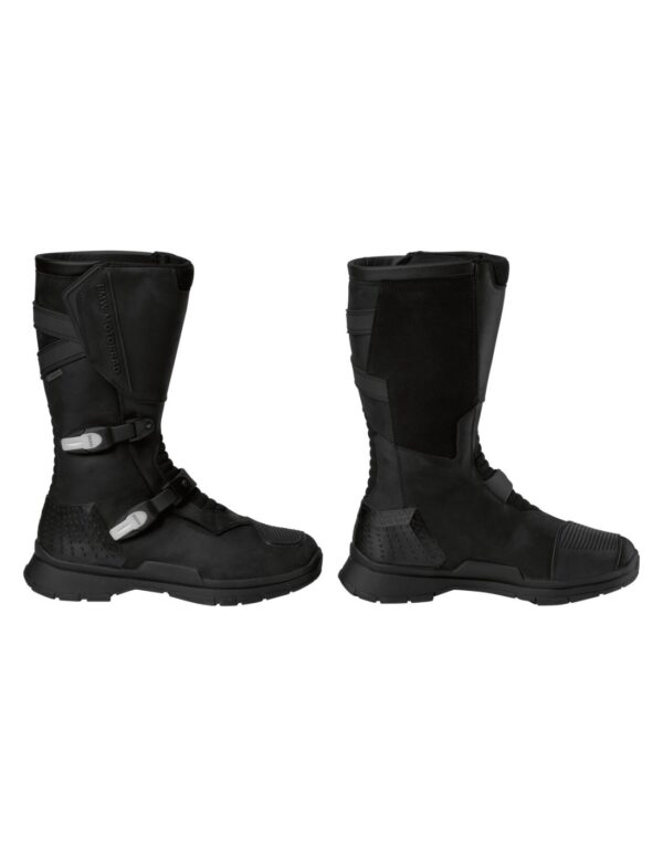 Las botas Gotthard GORE-TEX fabricadas de cuero resistente son las compañeras perfectas para los motociclistas de touring. Su certificación de Nivel 2 es sinónimo de robustez y seguridad. Gracias a la membrana GORE-TEX, las botas son resistentes al viento y al agua, la suela Vibram estanca al aceite y al combustible con un talón acampanado garantiza caminar cómodamente.