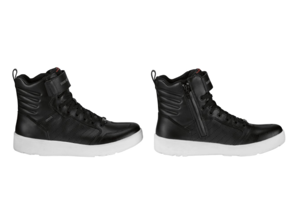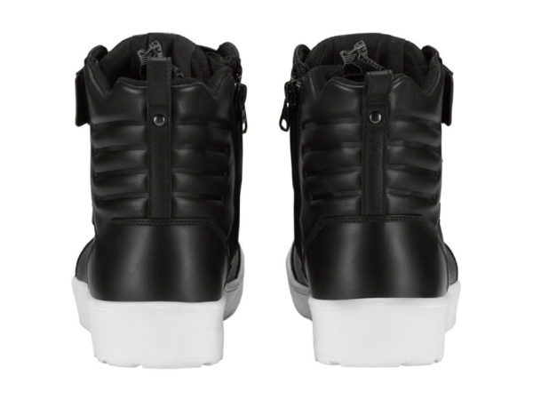 Las zapatillas Seoul GORE-TEX no solo impresionan por su aspecto elegante. La membrana GORE-TEX (columna de agua de 28.000 mm) protege contra el viento y el agua, en tanto que la suela resistente al aceite y al combustible y la protección integrada del talón y del tobillo proporcionan seguridad. La cremallera oculta en el interior garantiza que se puedan poner y quitar rápidamemte.