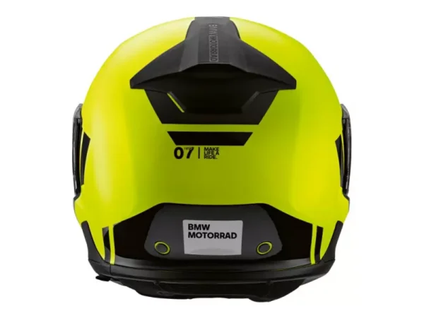 El casco modular se basa en un mecanismo de cuatro articulaciones y se puede transformar en un casco jet BMW de forma rápida y sin herramientas. La apertura de la parte de la barbilla se realiza con un botón central.