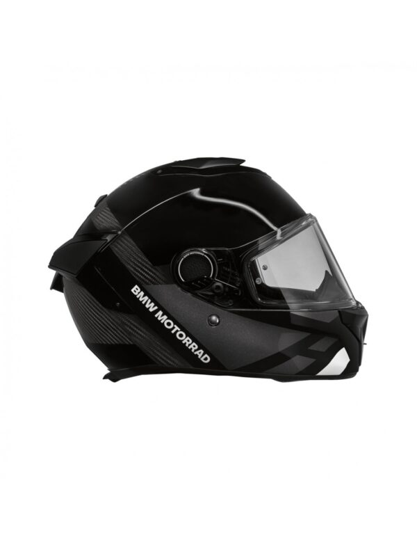 El casco dispone de un cierre BMW Ratchet System en la mentonera, para un perfecto agarre a la carretera. En caso de accidente, el sistema de liberación de emergencia está presente para retirar rápida y fácilmente el revestimiento interno.