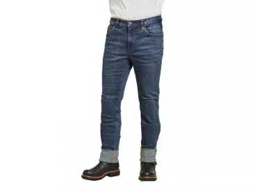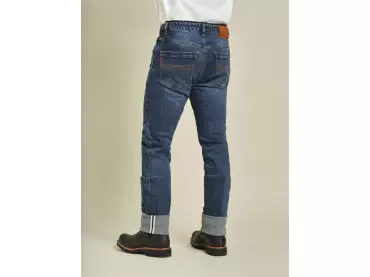 Los vaqueros Moabit combinan un aspecto cotidiano y un corte entallado con un alto nivel de seguridad al conducir una moto. El uso de Cordura® garantiza robustez y resistencia a la abrasión, mientras que los protectores NP-Flex en caderas y rodillas garantizan la seguridad. Cinco bolsillos completan los vaqueros.